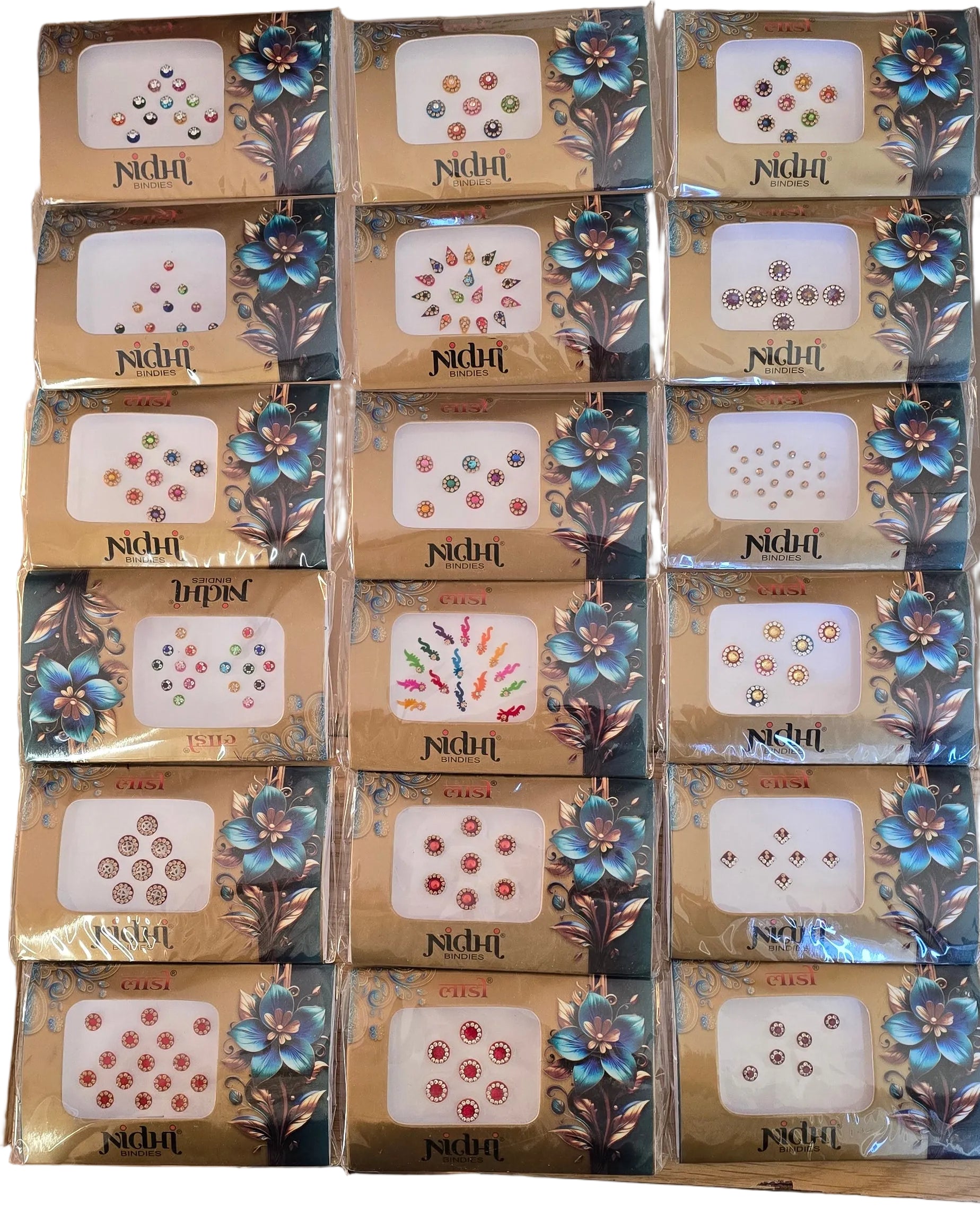 Self adhesive sticker jewelry . Handcrafted by women artisans by decorating the shaped bindis with crystals and fine findings .