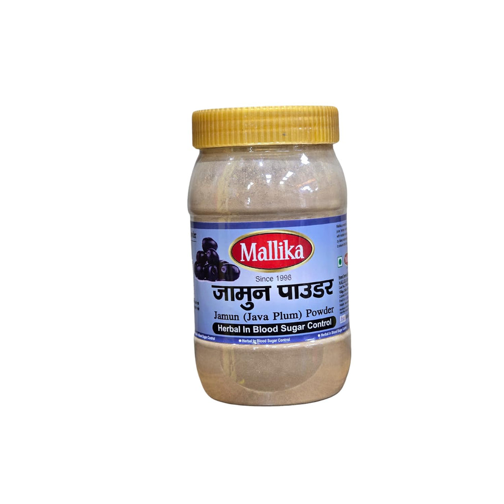 Mallika Jamun Powder is a natural, finely ground powder made from the dried Jamun fruit, also known as the Indian blackberry. Carefully sourced and processed to retain the fruit's natural flavor and essential nutrients, this powder is a versatile addition to your daily wellness routine. Jamun has been cherished for its unique taste and potential benefits in traditional wellness practices. Free from artificial additives and preservatives, Mallika Jamun Powder ensures a pure, natural product that can be easily mixed with water, juices, or smoothies. It can also be used in various culinary preparations like desserts, snacks, and even chutneys. Conveniently packed in a 200g pouch, this powder is easy to store and use, making it a perfect addition to your kitchen or wellness regimen. Incorporate Mallika Jamun Powder into your daily routine for a refreshing and natural twist to your beverages and meals.