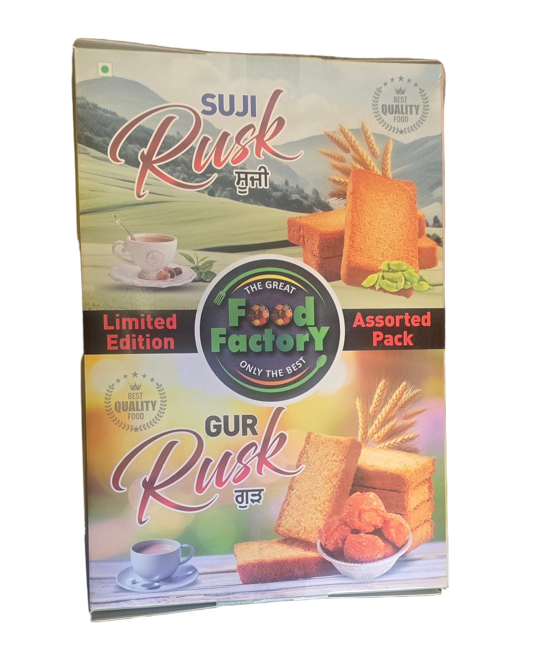 FOOD FACTORY GUR RUSK & SUJI RUSK COMBO PACK 600gm