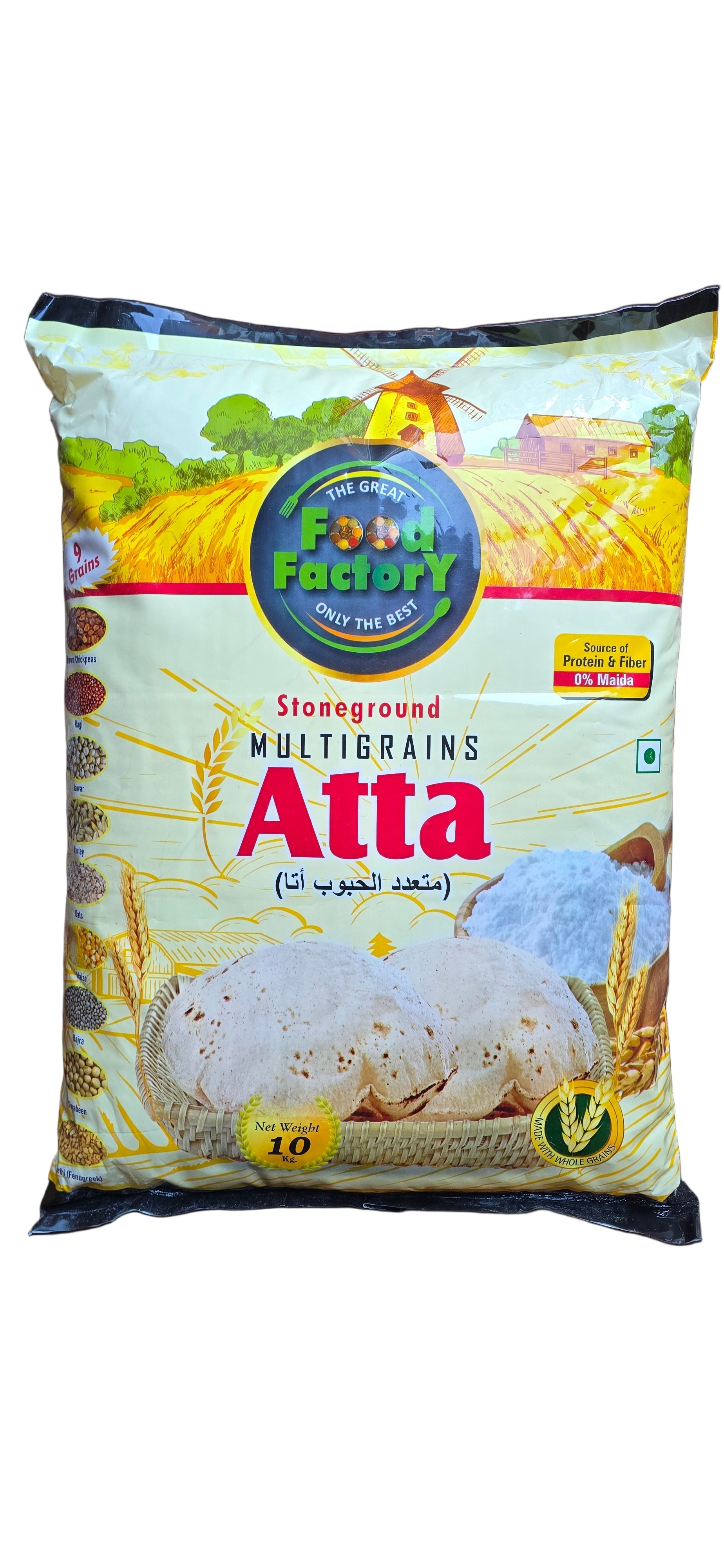 Food Factory Multigrain Indian Atta 10Kg |Great Taste | Transform Your Rotis | Extra Protein | Grow Strength | Nourishment | Vegetarian | Dietry Fibre | 10Kg